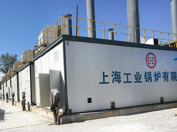 The 29MW boiler and its auxiliary supporting boiler are made up of two modular containers. Main module setting: boiler body, burner, natural gas valve group, pressure regulator valve group, control cabinet and detection, lighting, burner and blower connecting flue, connecting water pipe, etc. Auxiliary module settings: condensing energy saver, blower and muffler, recirculating flue, connecting flue and chimney, connecting water pipes, etc. The height and length of the two modules are the same, and they are integrated into the scene. The site can be put into operation only after connecting the necessary water supply interface, return water interface, flue interface, gas interface, power distribution interface and control interface.