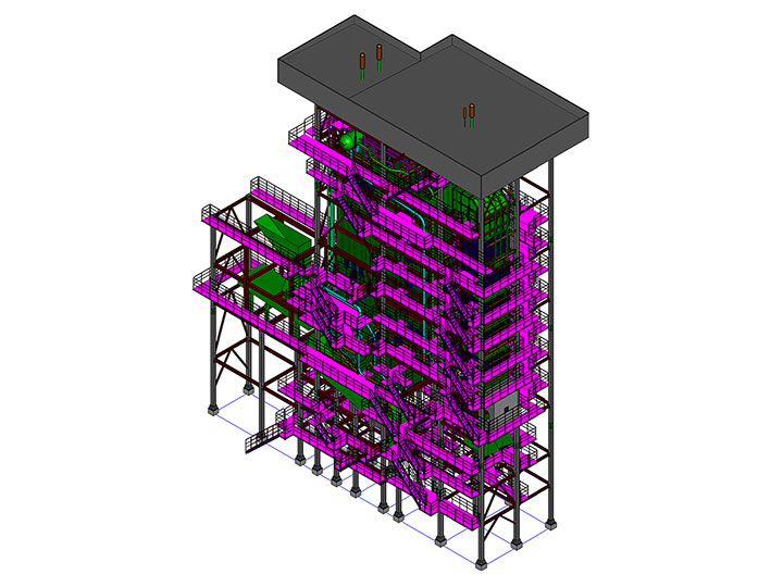 d、流化床鍋爐:采用后傾式布風(fēng)板加固,保證大塊固化物順利排出;采用外置式高溫過熱器,延長高溫過熱器使用壽命;布置大節(jié)距尾部受熱面,較少管排堵塞。